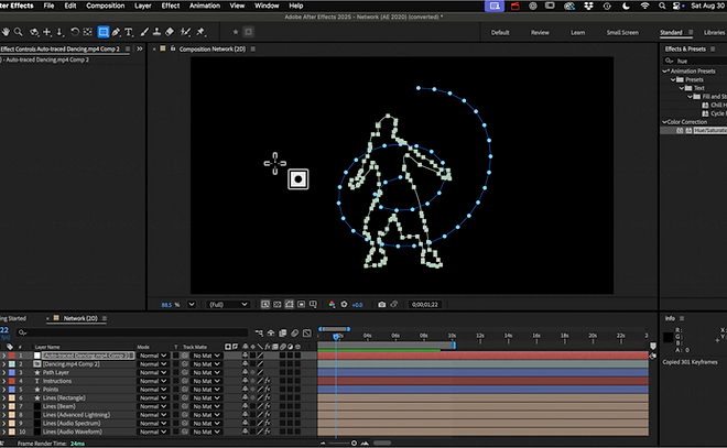 ポイントのグループを作成し、シンプルなコントロールを使ってダイナミックなフォーメーションと動きを割り当て、点線、稲妻、光線、音声駆動の波形など、様々なラインでリンクできます。直感的なコントロールで、素早く簡単にカスタマイズできます。After Effectsのシェイプレイヤーからネイティブに構築されたNetworkのカスタマイズ機能は、AEの機能と同等の拡張性を備えています。VIDEO 高価な AE プラグインの安価な代替品。