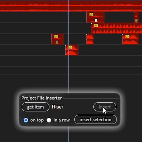 プロジェクト パネルで選択した項目を挿入します。
